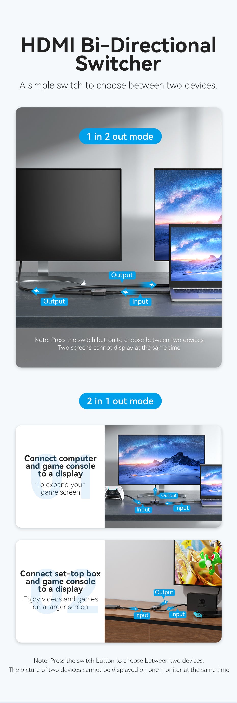 - Product Type: 2-Port HDMI Bi-Direction Switcher