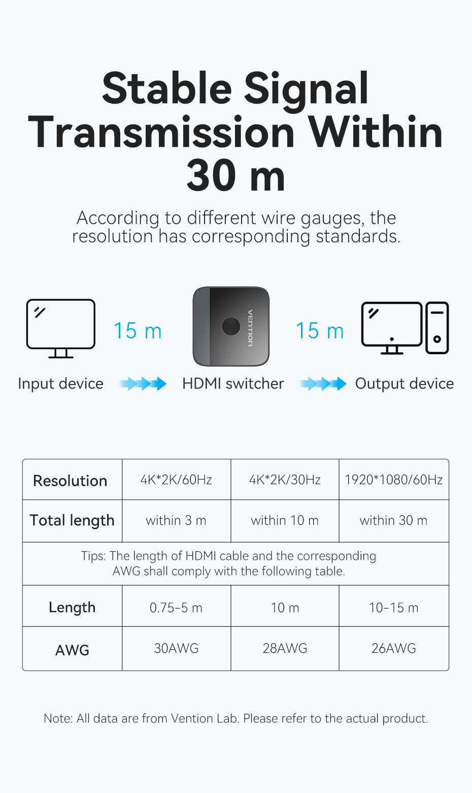 - Cable Length: Requires HDMI cables for input and output (cables not included)