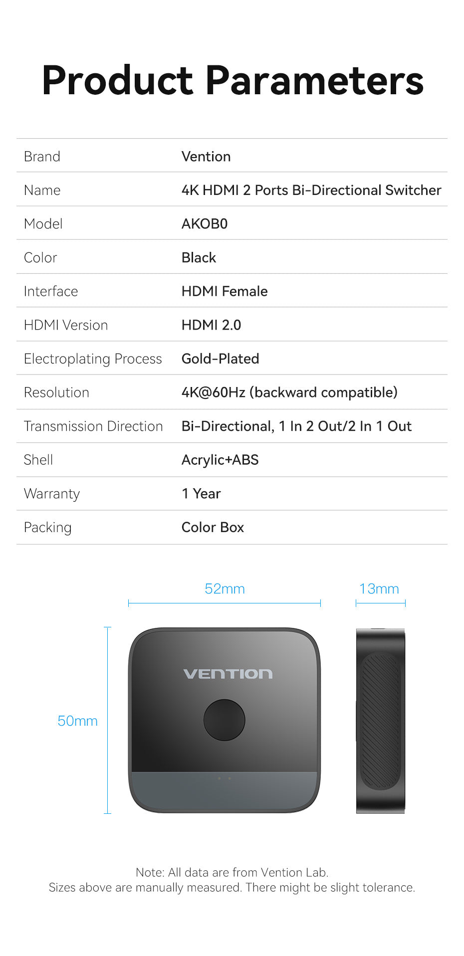 Vention 2-Port HDMI Bi-Direction 4K Switcher