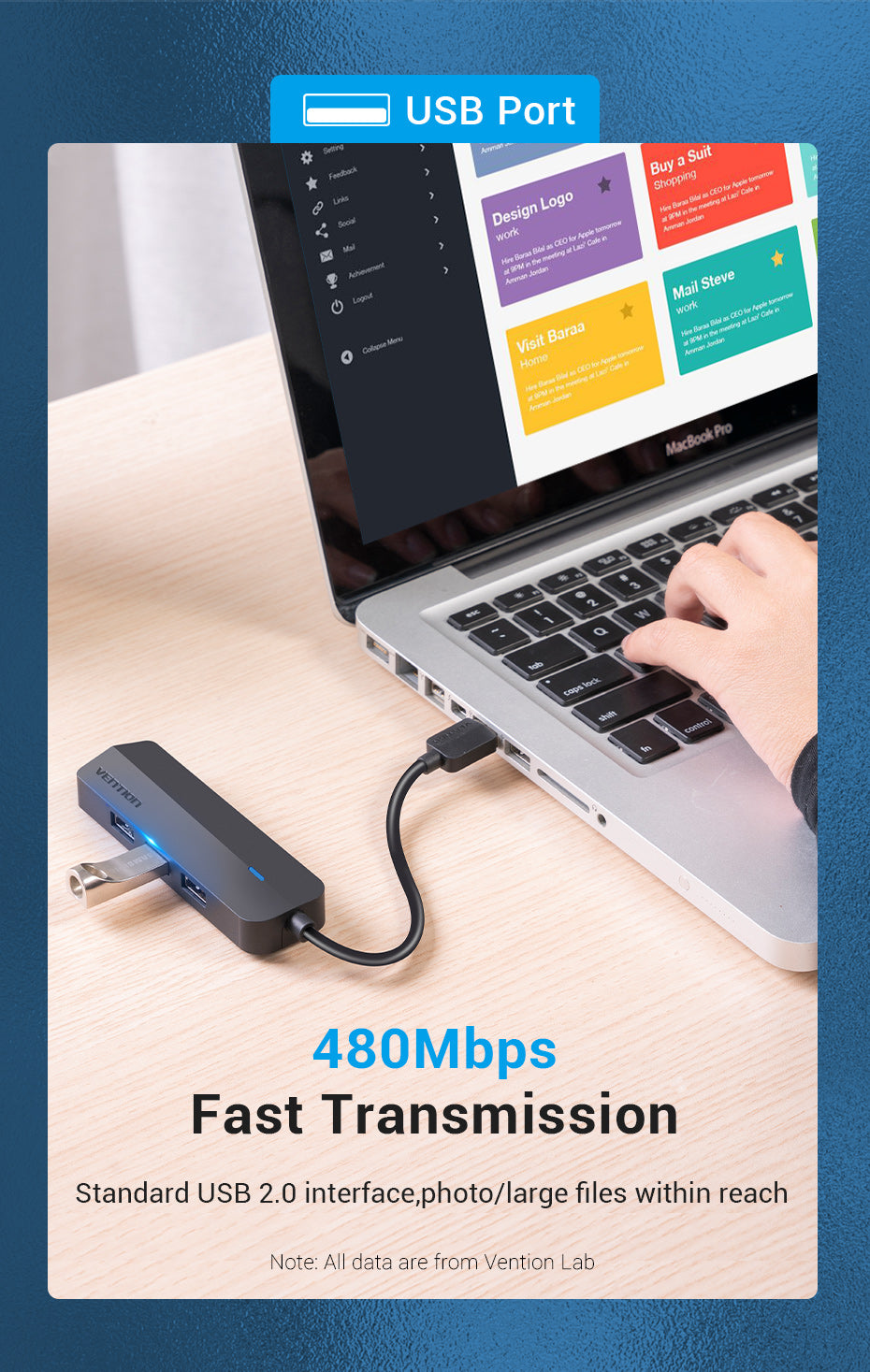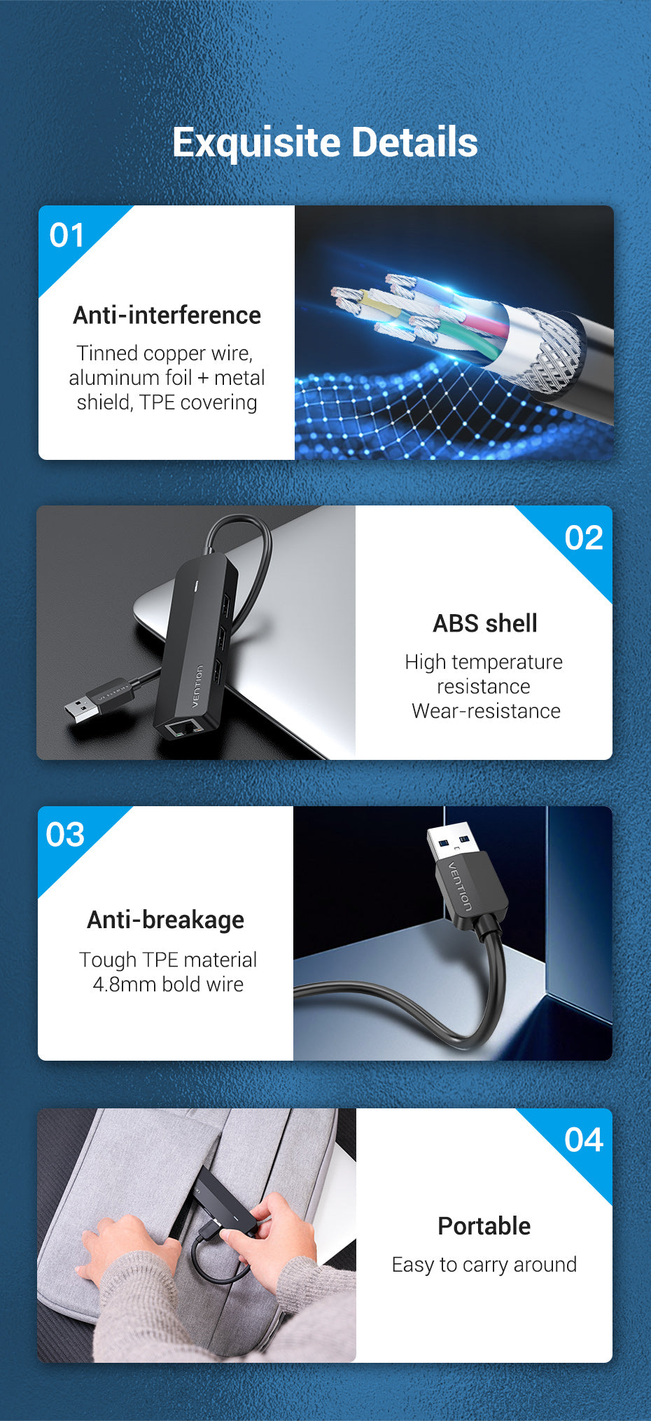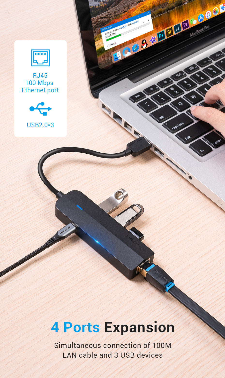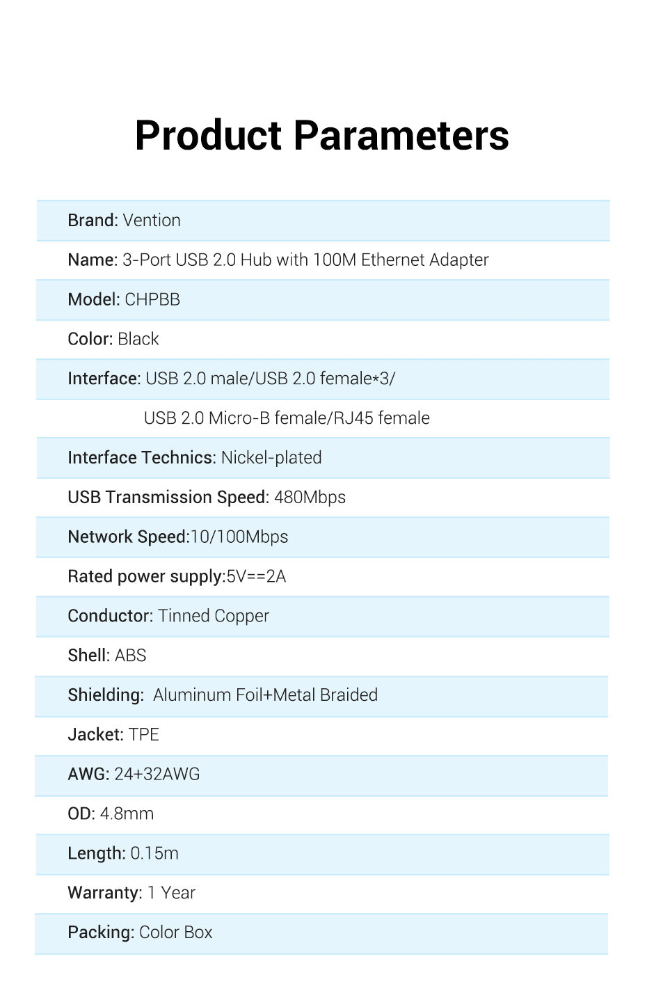 - Product Name: Vention 3-Port USB 2.0 Hub with 100M Ethernet Adapter