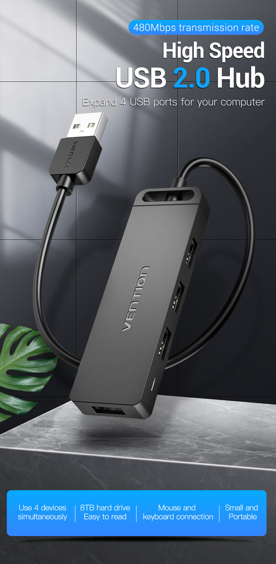- Data Transfer Rate: Supports USB 2.0 speeds, up to 480 Mbps
