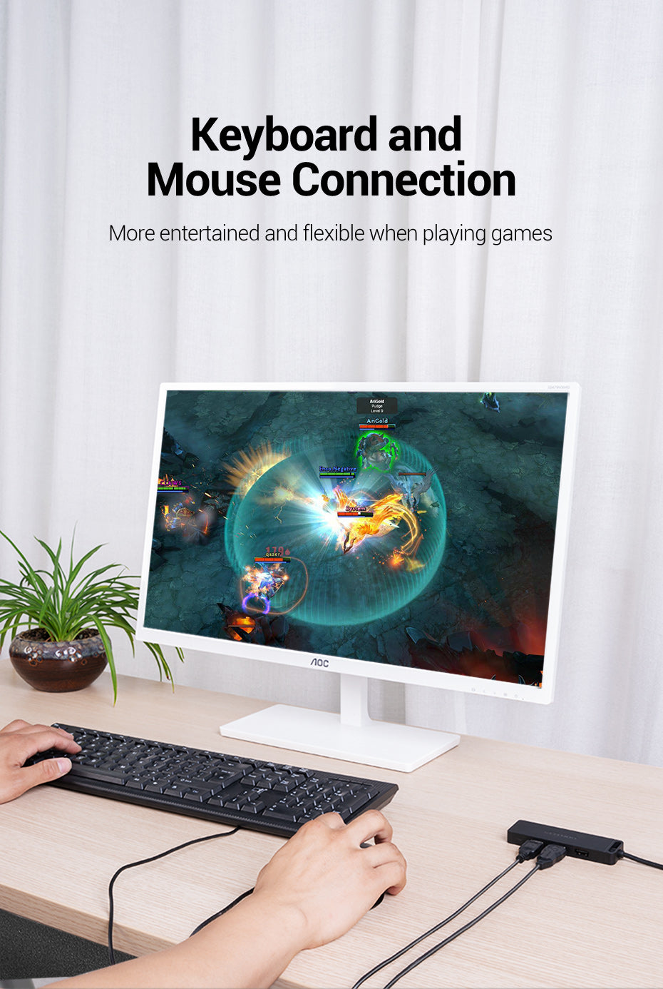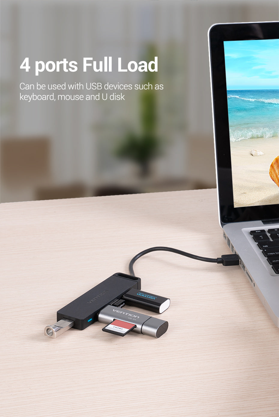 Can be used with USB devices such as keyboard, mouse and U disk