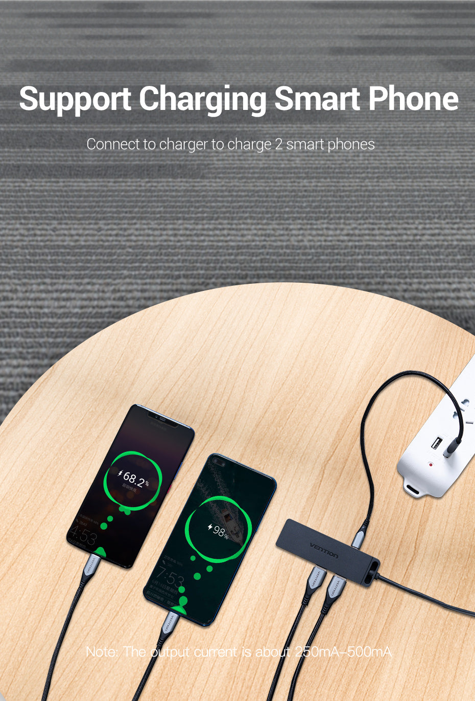 Connect to charger to charge 2 smart phones