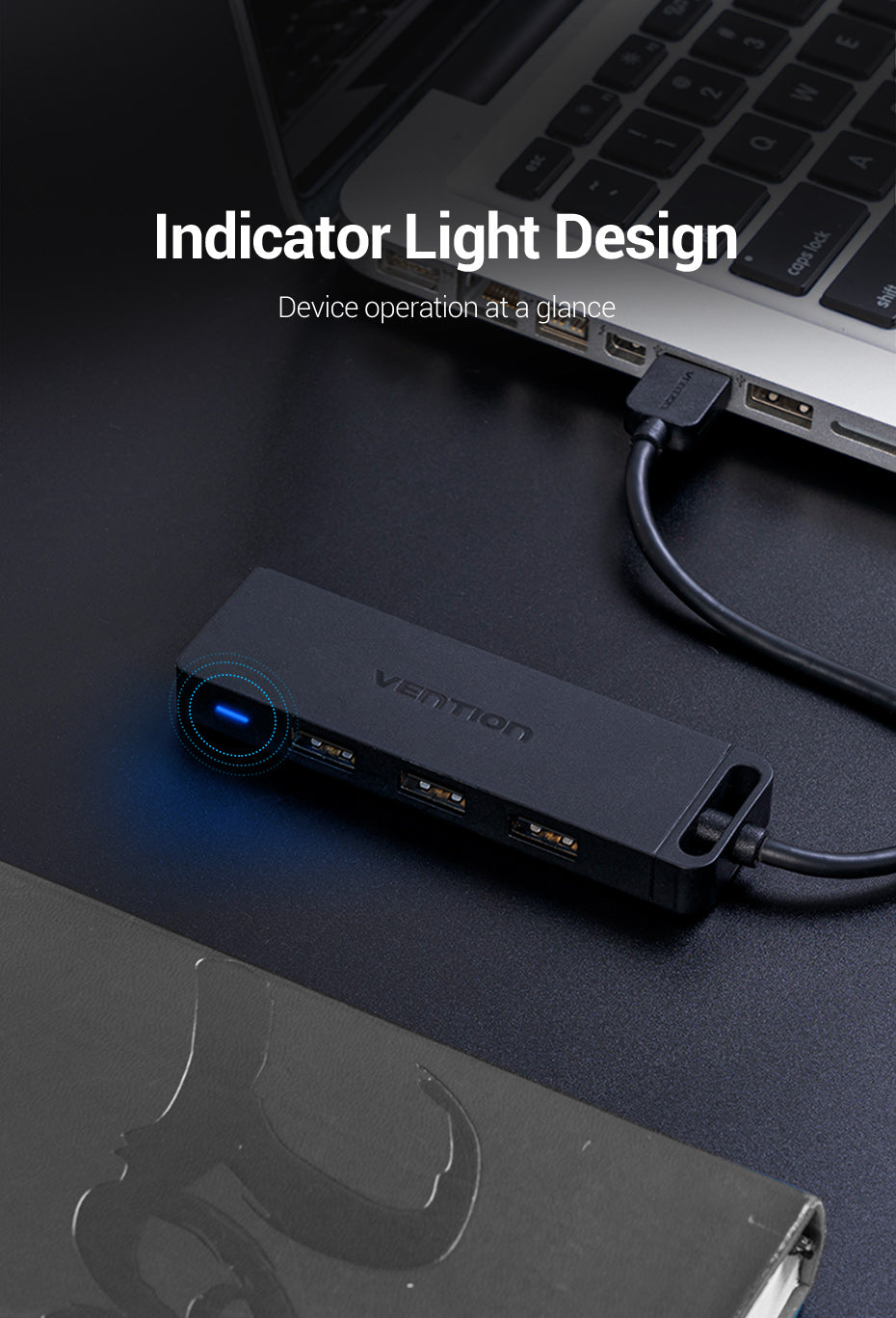 - LED Indicator: Power/activity indicator LED for hub status