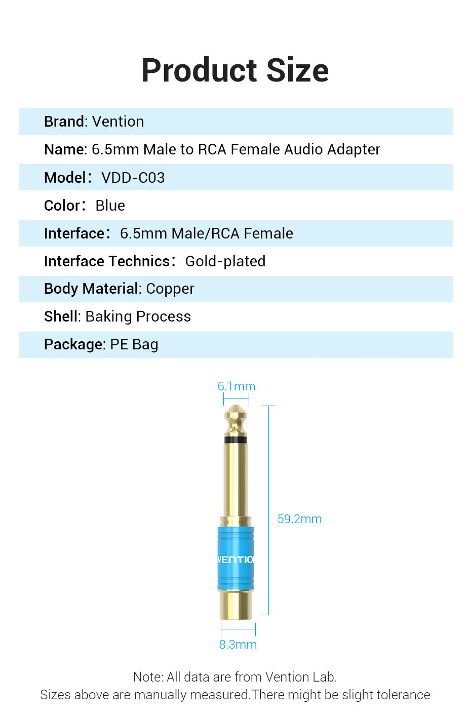 Venton 6.5mm Male to RCA Female Audio Adapter