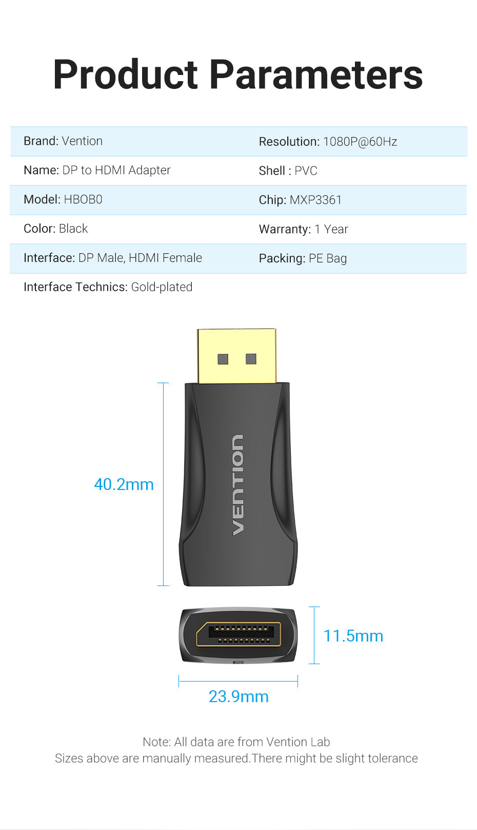 - Product Type: DisplayPort Male to HDMI Female Adapter