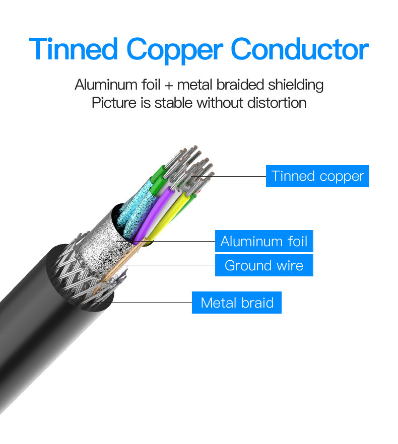 - Inner Material: Oxygen-free copper core for better conductivity and signal stability