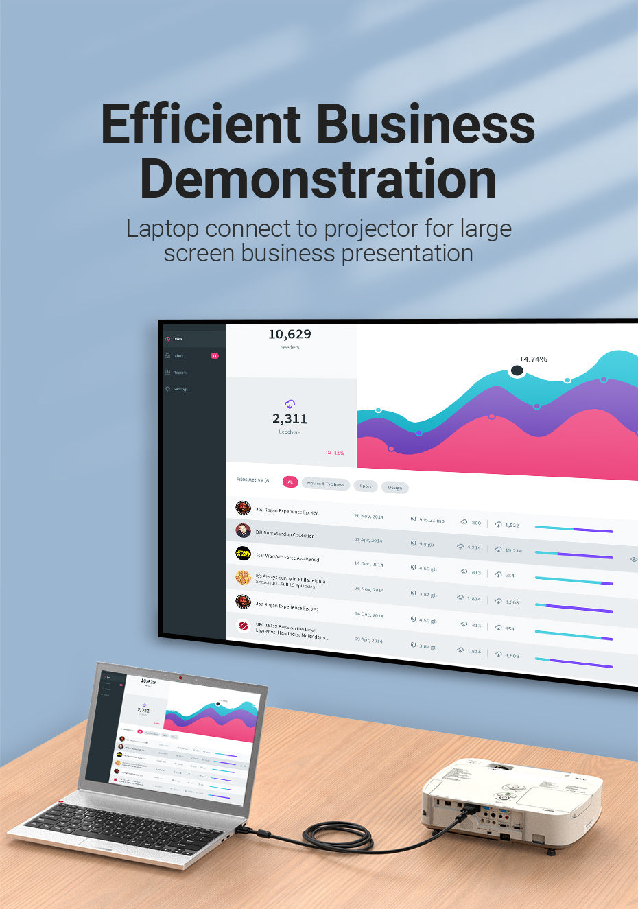 • Works with VGA-enabled displays (e.g., monitors, projectors)