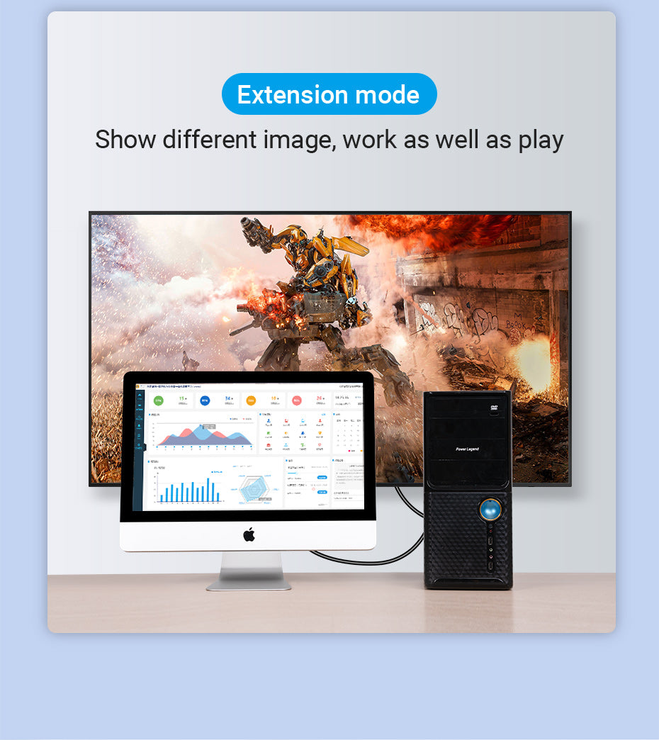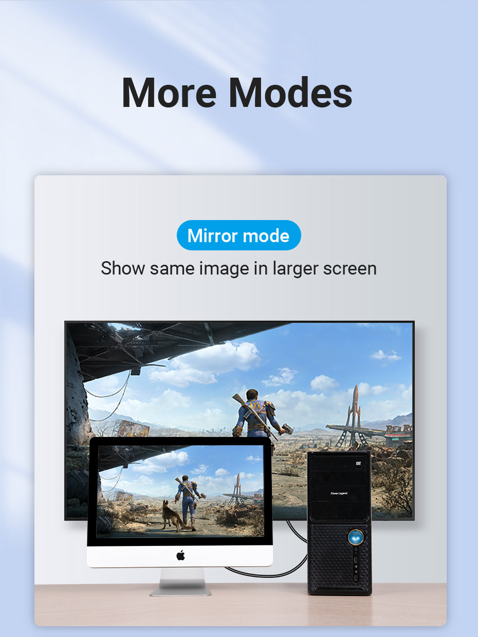 • Supports video output only (no audio transmission, as VGA does not carry audio signals)