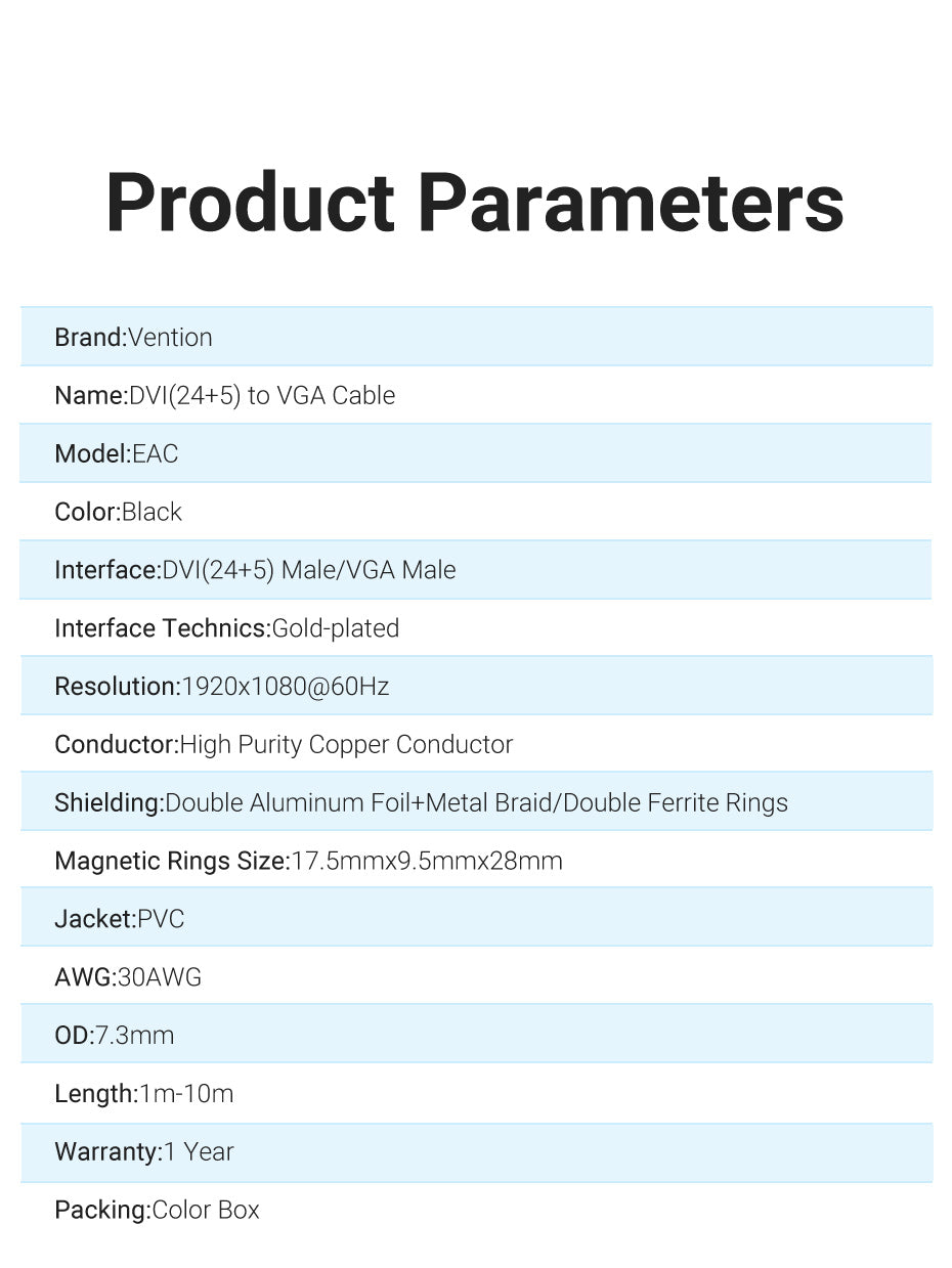 Vention DVI(24+5) to VGA Cable, for Computer Laptop TV displayer