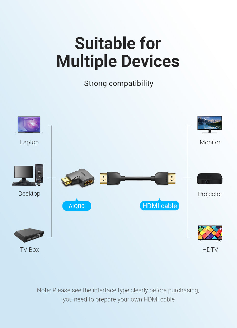 Don’t need to bend the HDMl cable, and solves the problems of inconvenient wiring caused by TV