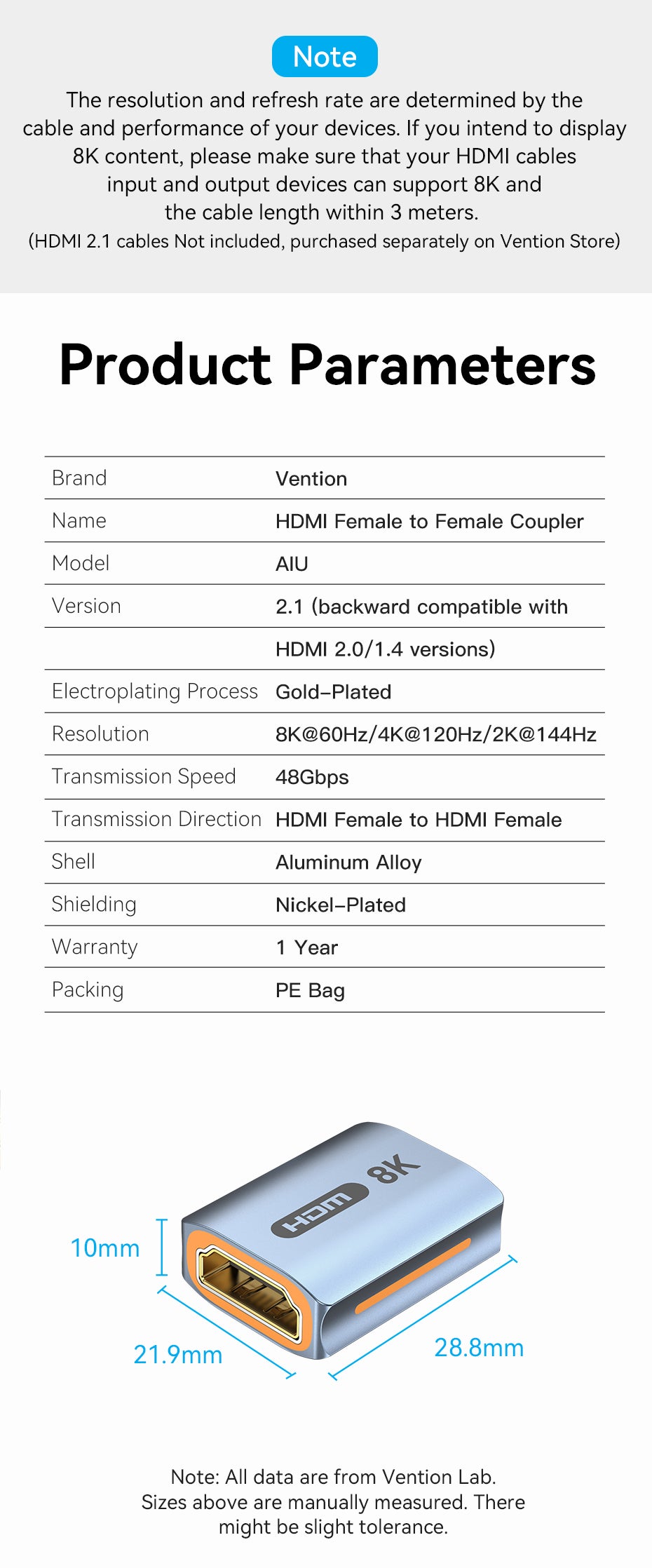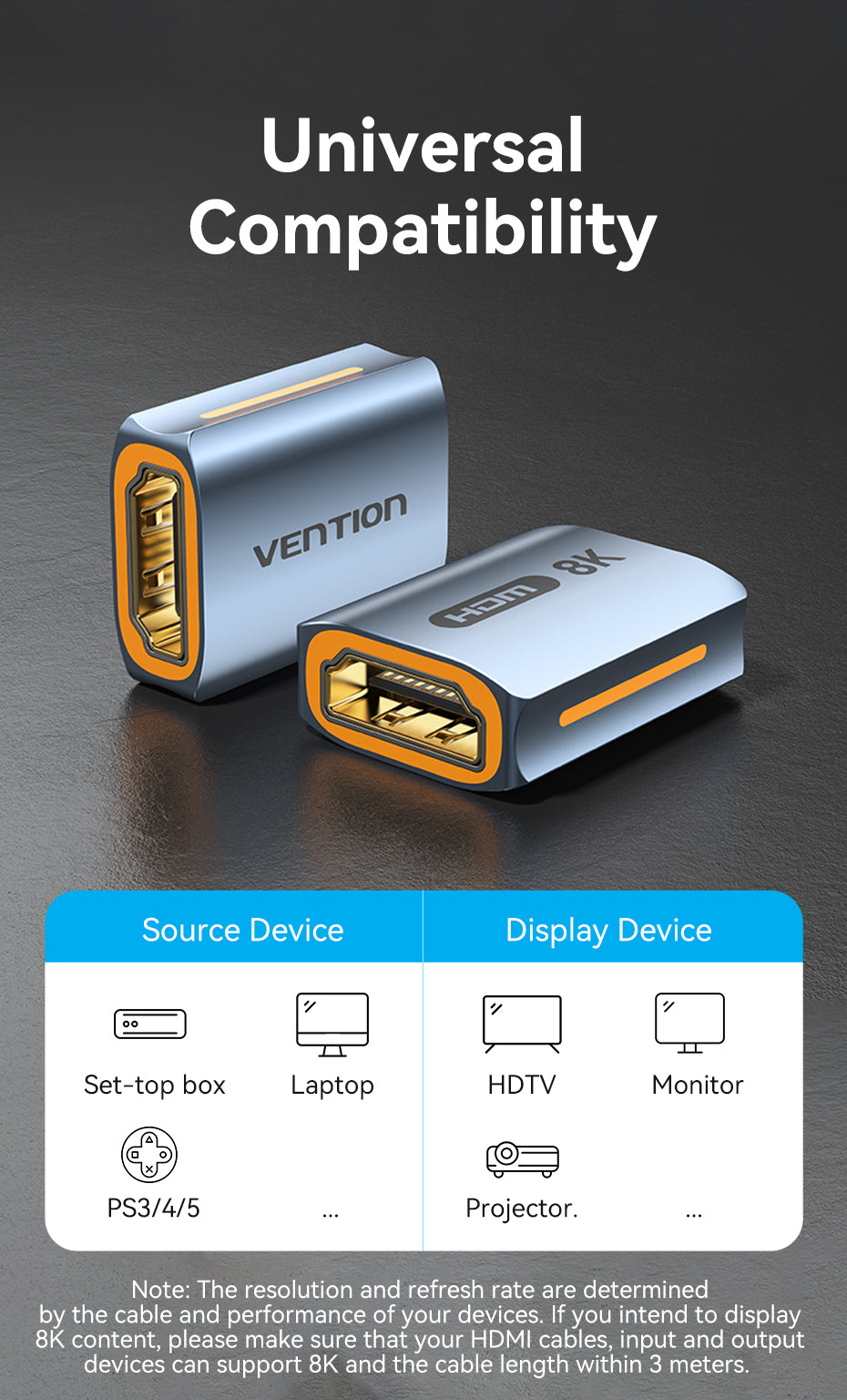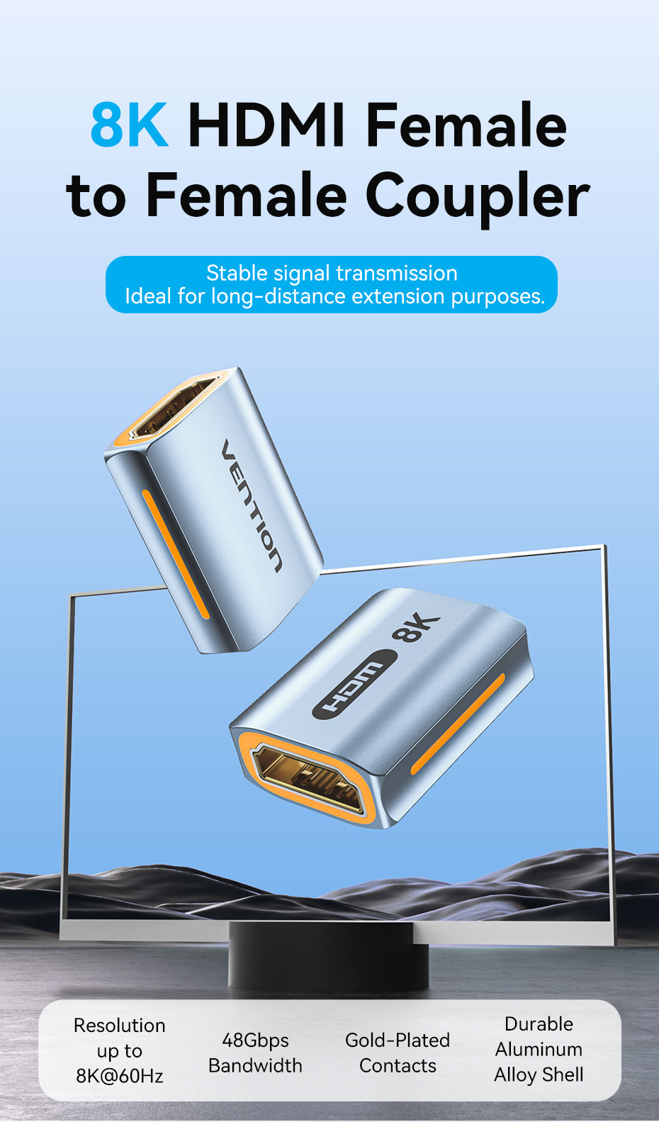 Vention HDMI-A Female to Female 8K Adapter, for Set-top box/Laptop/PS3/4/5/TV/Projector