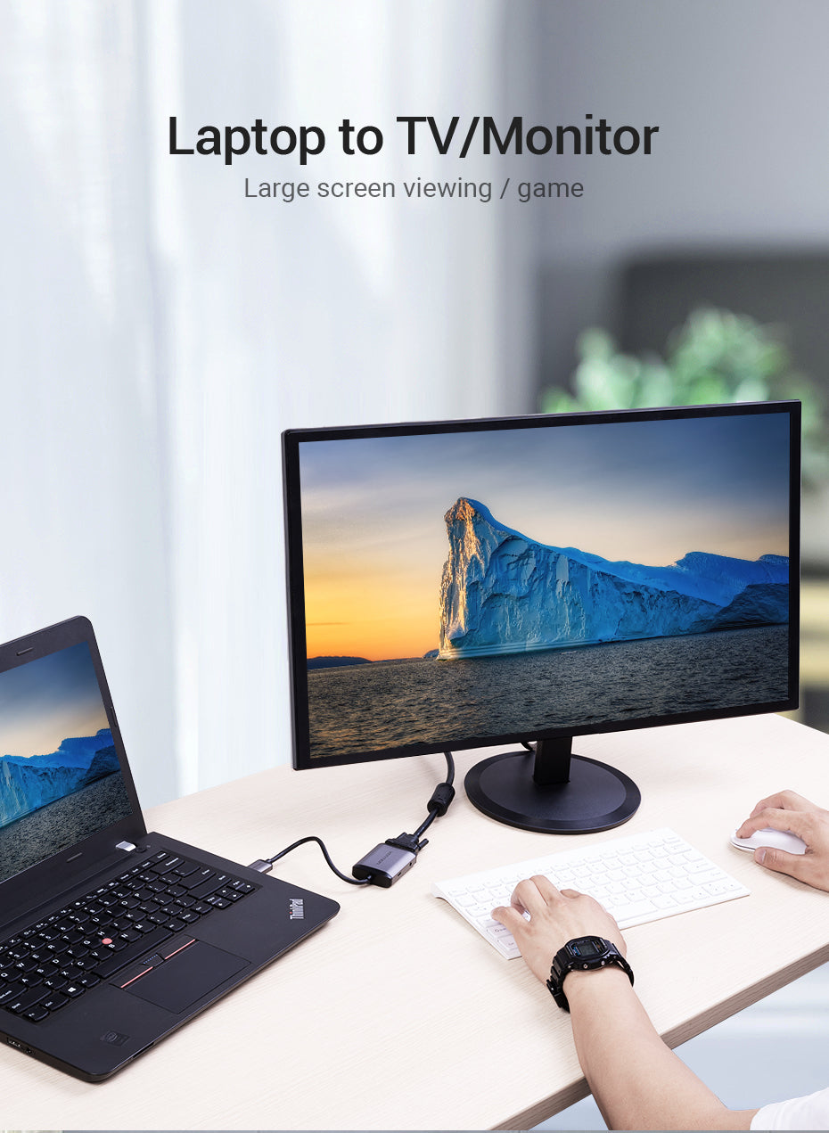- Signal Conversion: Converts HDMI output to both HDMI and VGA simultaneously for versatile connectivity