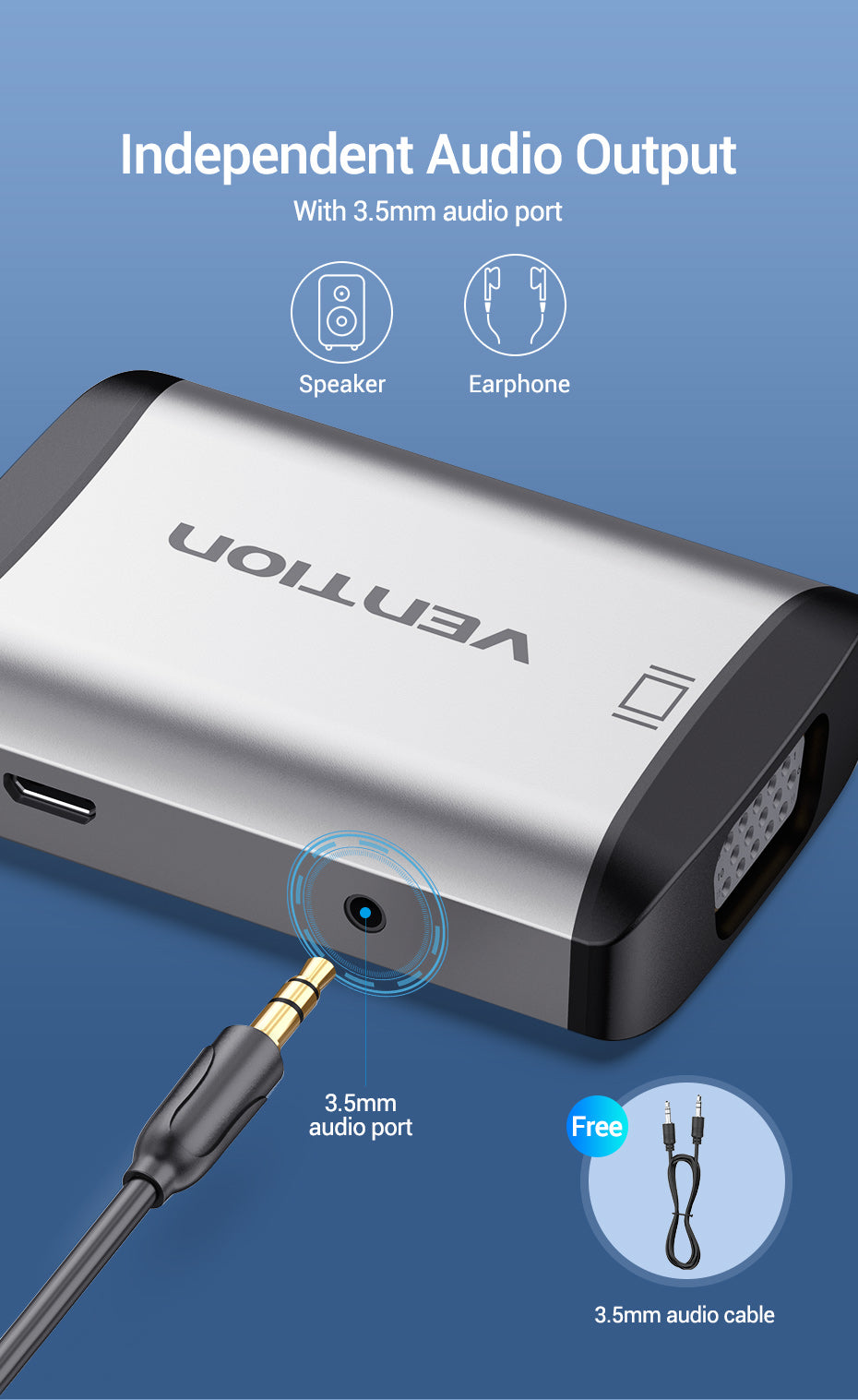 - VGA does not carry audio; separate audio output is required for VGA connection
