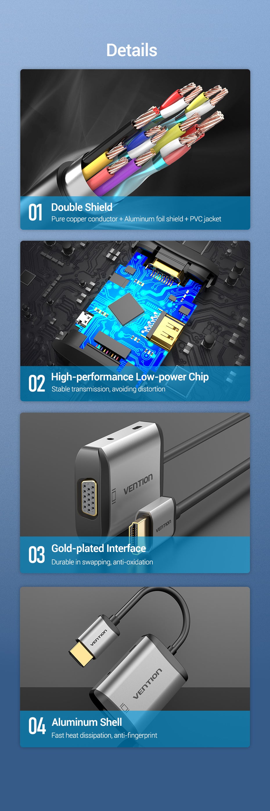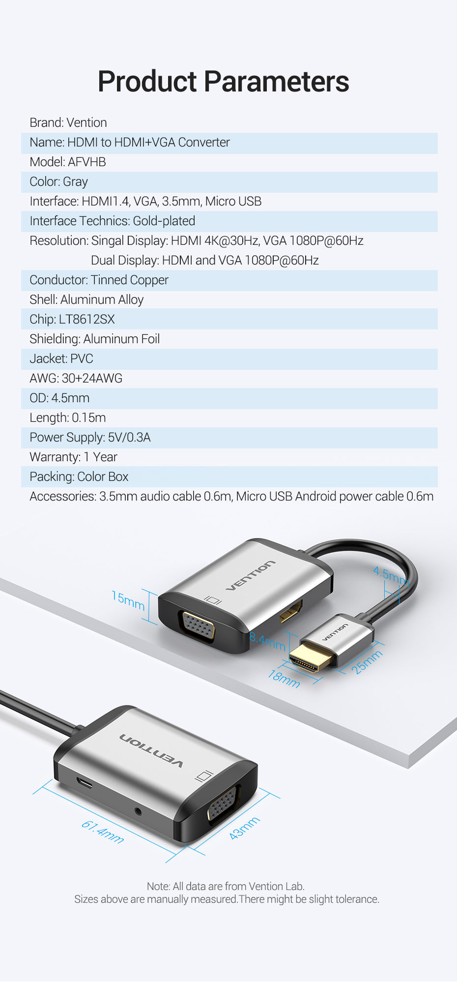 Vention HDMI to HDMI+VGA Converter 0.15M Gray Metal Type, AFVHB