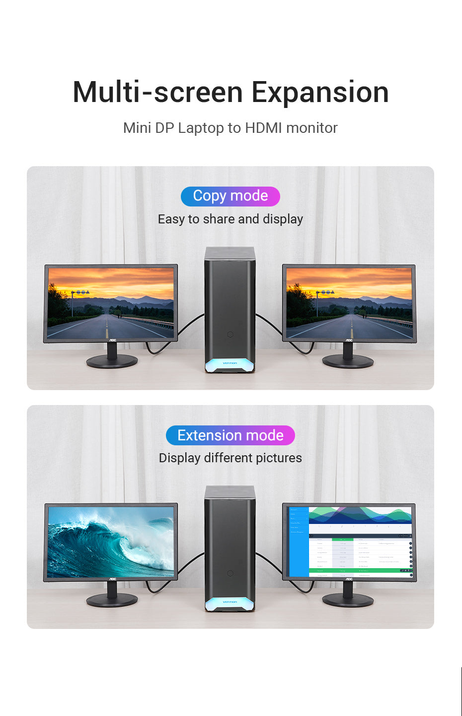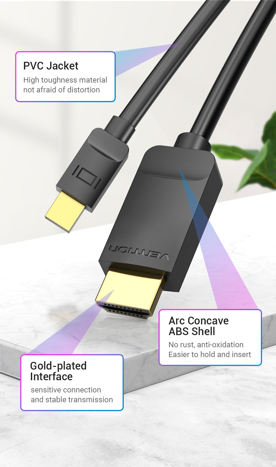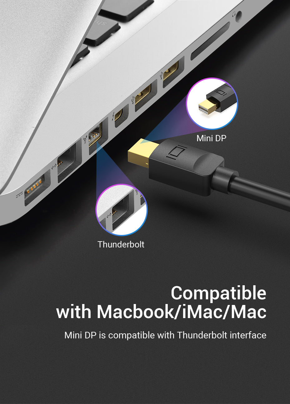 - Compatibility: Works with devices that have Mini DisplayPort (e.g., MacBooks, Microsoft Surface, and other laptops) and displays with HDMI ports (e.g., monitors, TVs, projectors)
