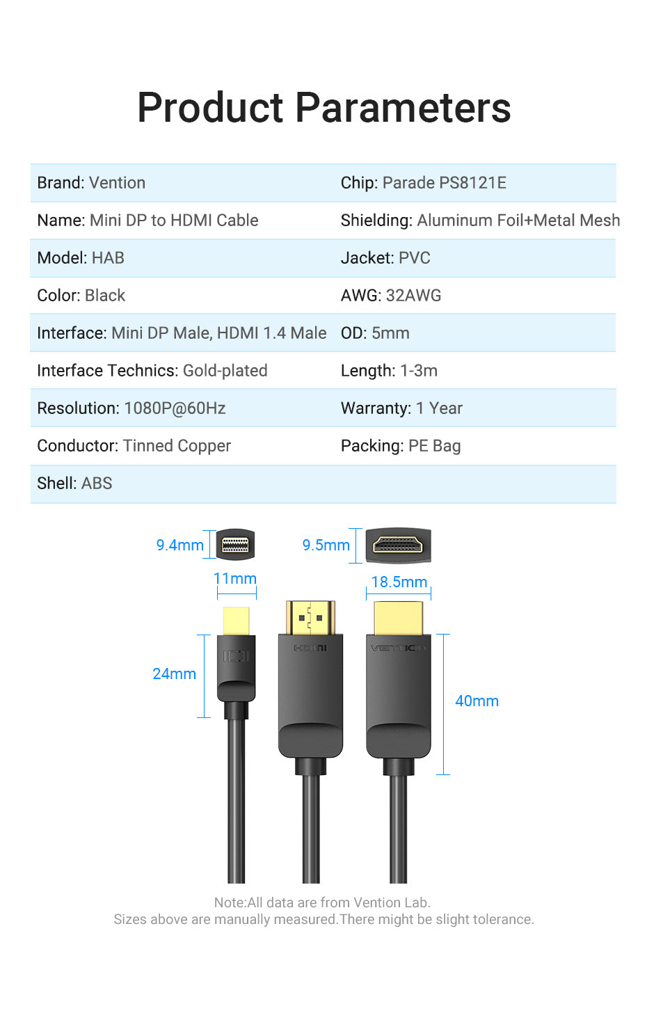 Vention Mini DP to HDMI Cable, Computer/Macbook/iMac