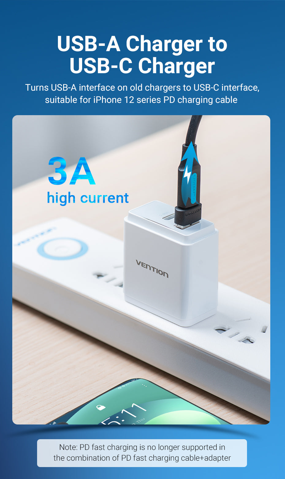 Turns USB-A interface on old chargers to USB-C interface,suitable for iPhone 12series PD charging cable