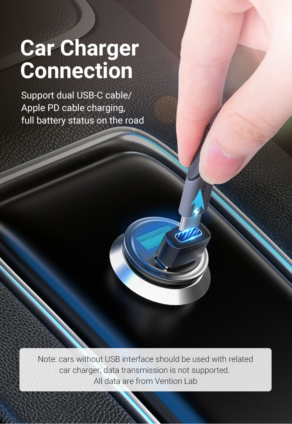 Support dual USB-C cable/Apple PD cable charging full battery status on the road