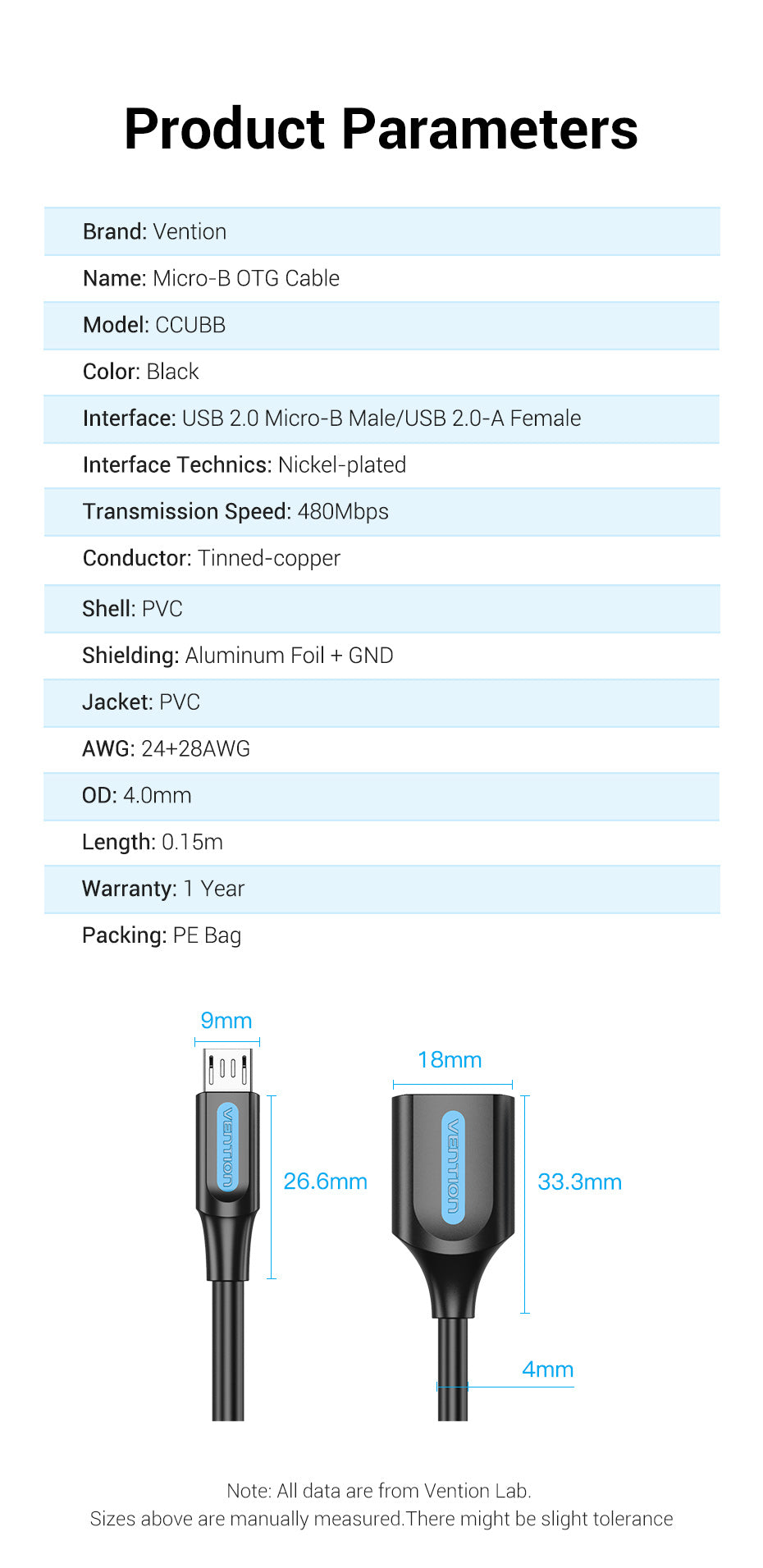 Be the first to review “Vention USB 2.0 Micro-B Male to A Female OTG Cable 0.15M Black PVC Type, CCTBB”