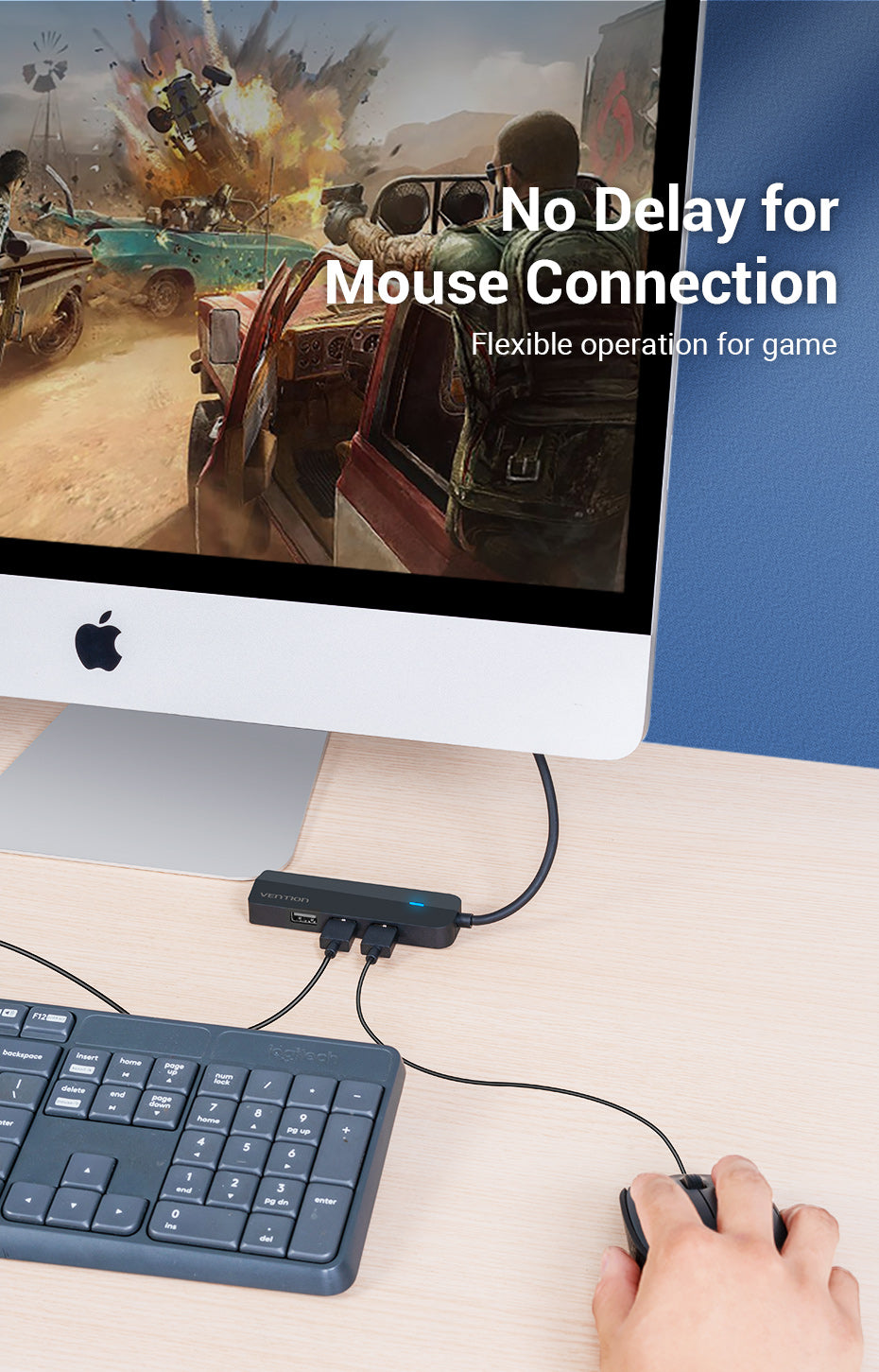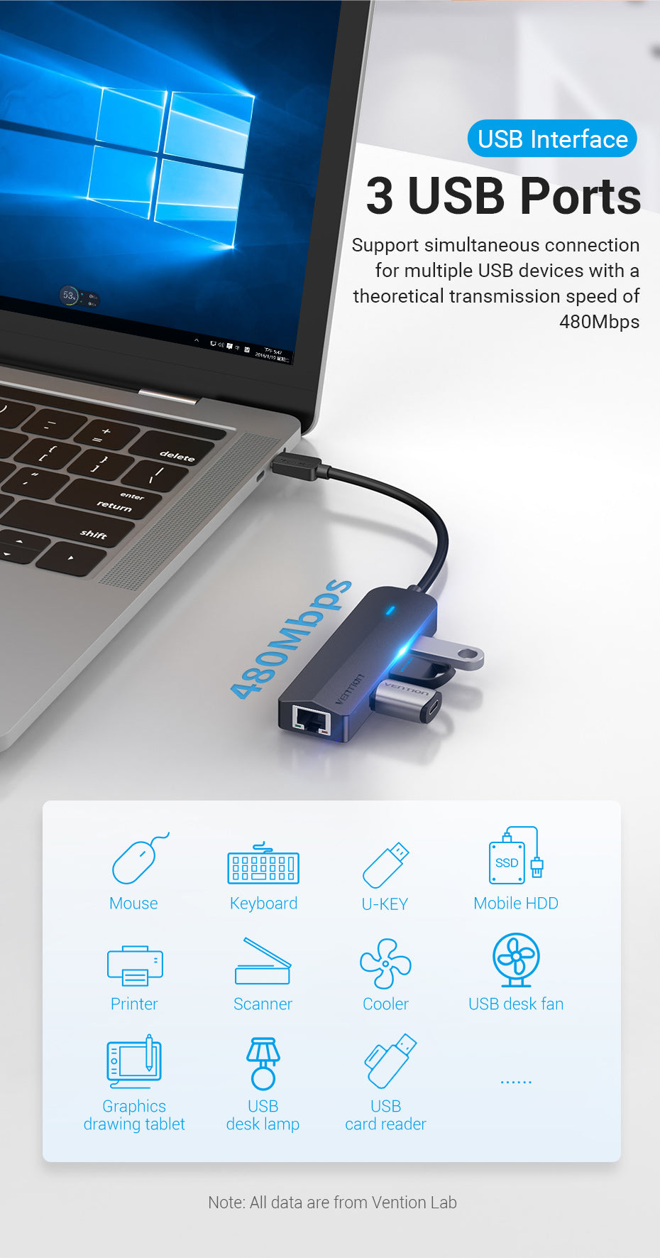 Support simultaneous connection for multiple USB devices with a theoretical transmission speed of 480Mbps.