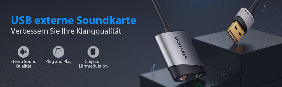 - USB External Sound Card Adapter ist mit 15CM Länge für einfaches Tragen und flexibler.