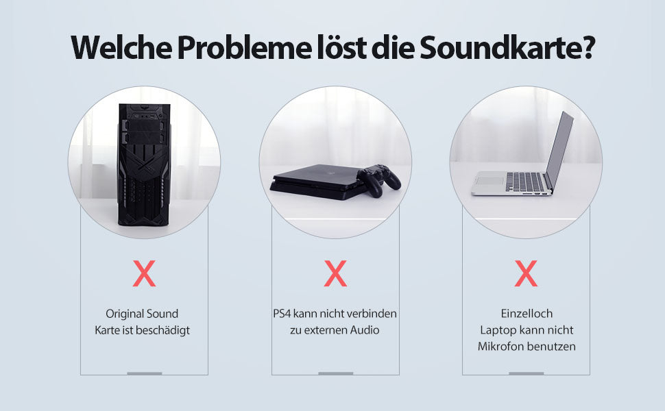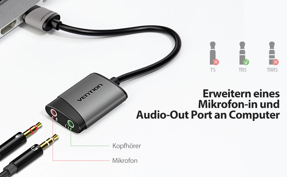 - USB Sound Card USB-Anschluss mit Ihren vorhandenen 3.5 mm Audio-Kopfhörern, Headset, Lautsprechern oderMikrofon.Perfektum eine fehlerhafte Soundkarte, einen Audio-Port oder als Ersatz für einen defekten USB-Audio-Adapter zu umgehen.Hinweis: Das Ohrhörer muss das Mikrofon unterstützen, wenn wir einen Sprachanruf wollen.
