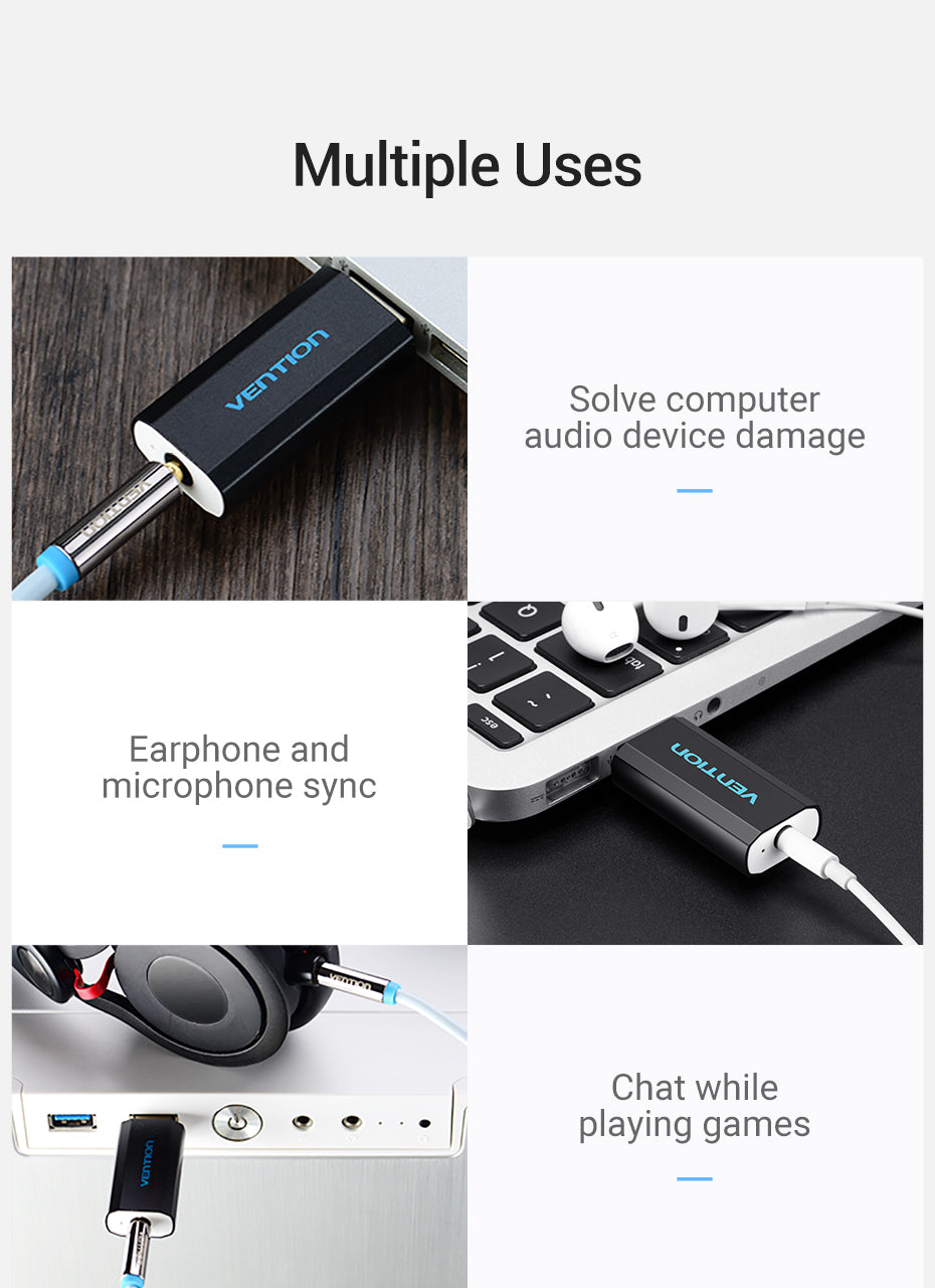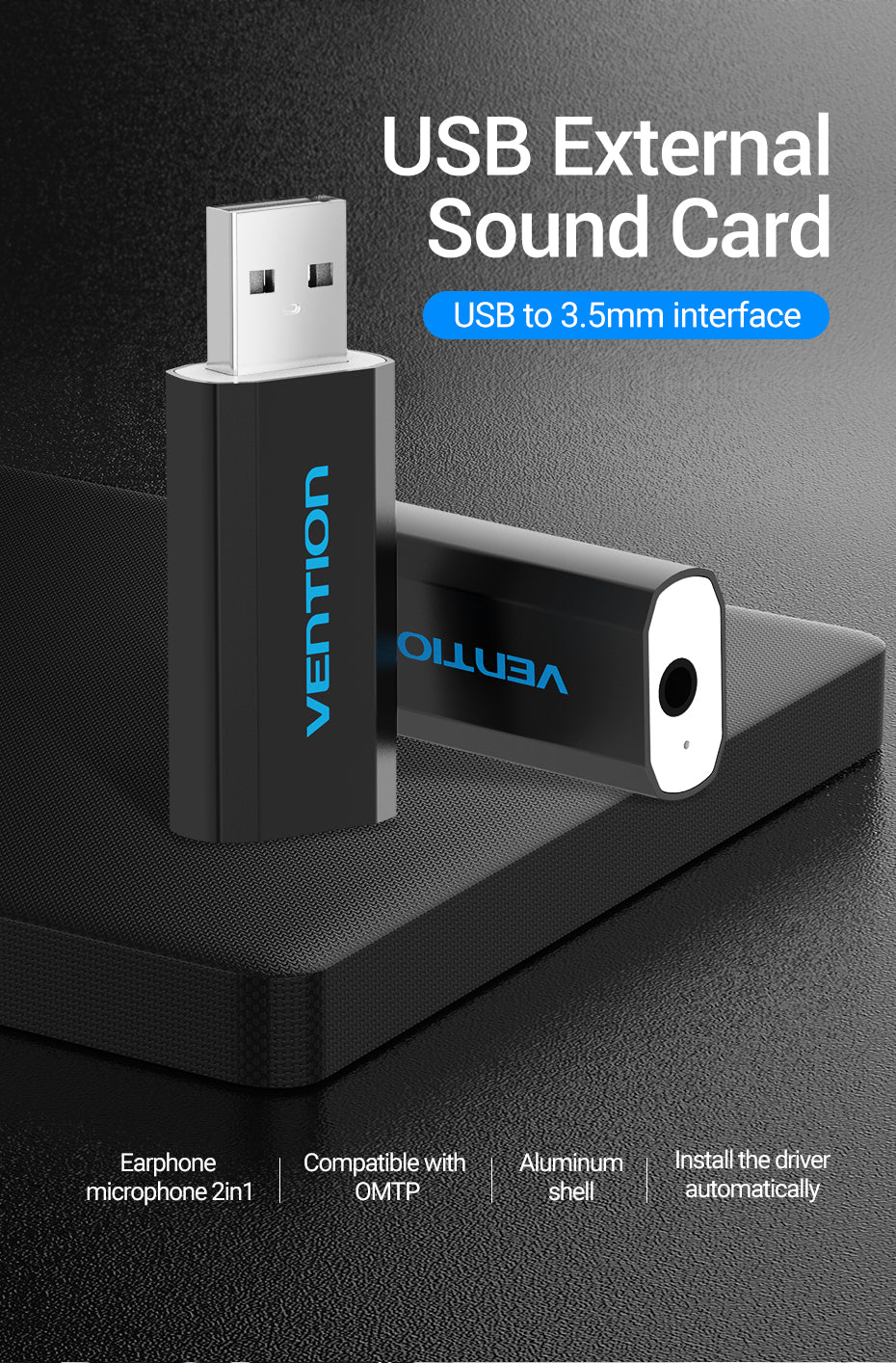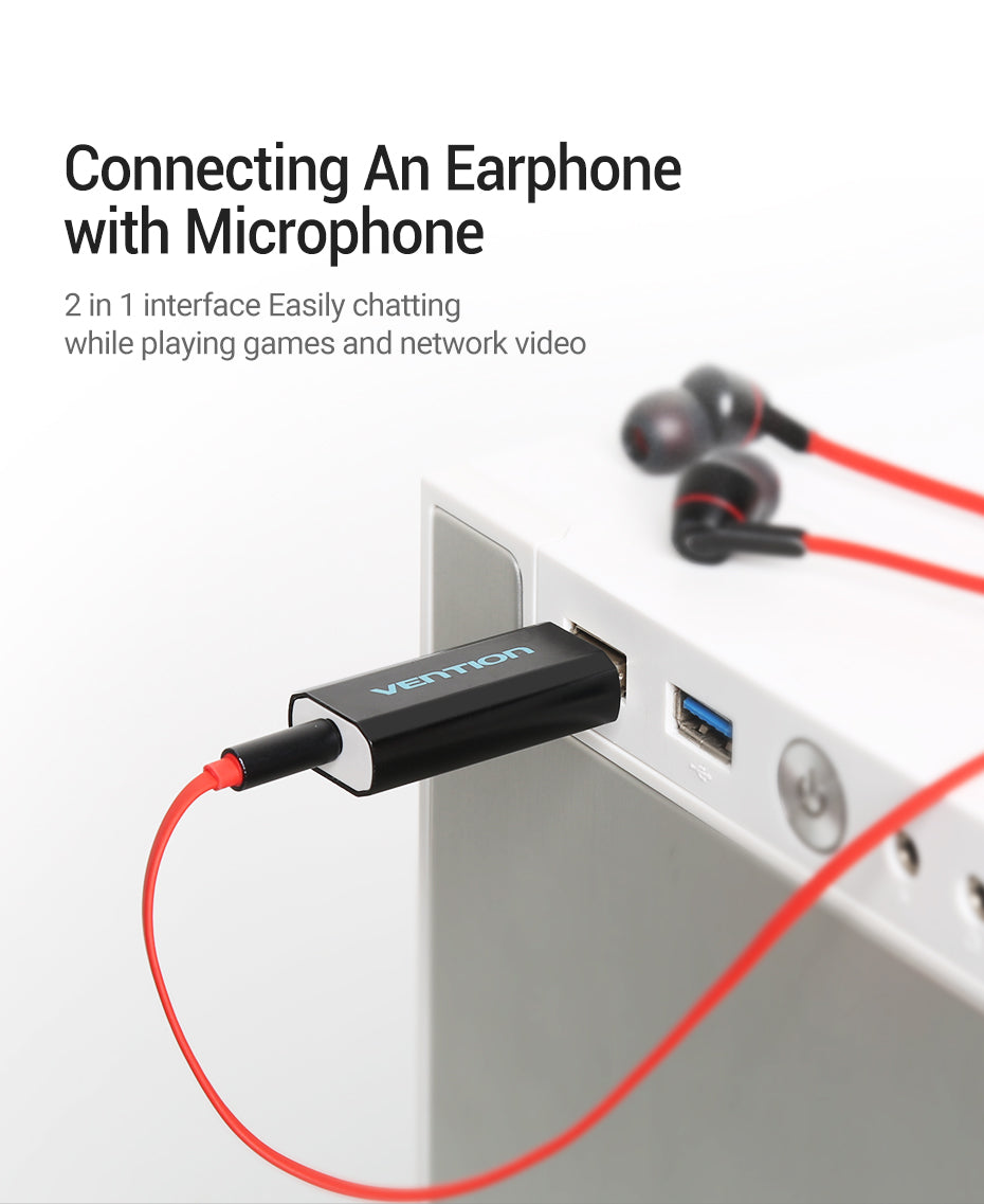 Vention USB External Sound Card Black Metal Type (CTIA)