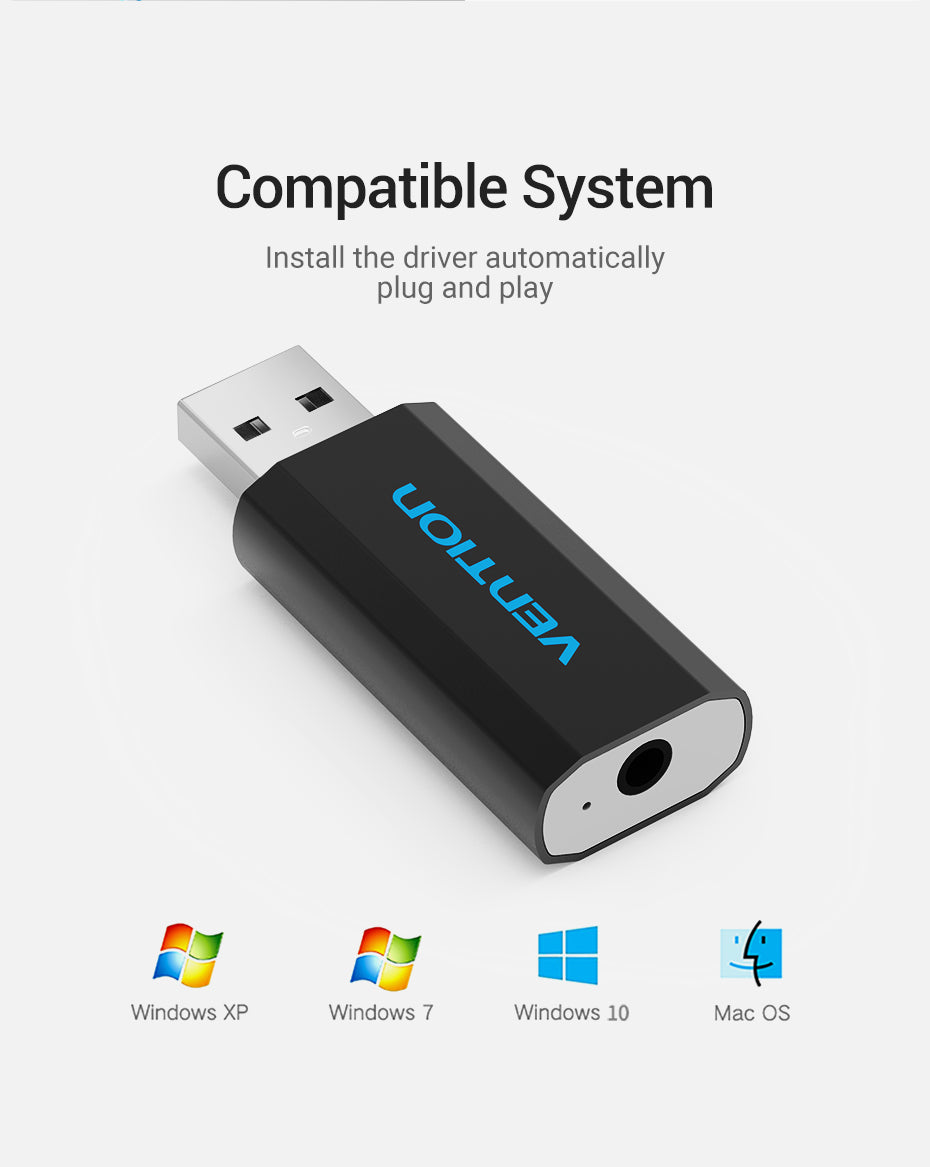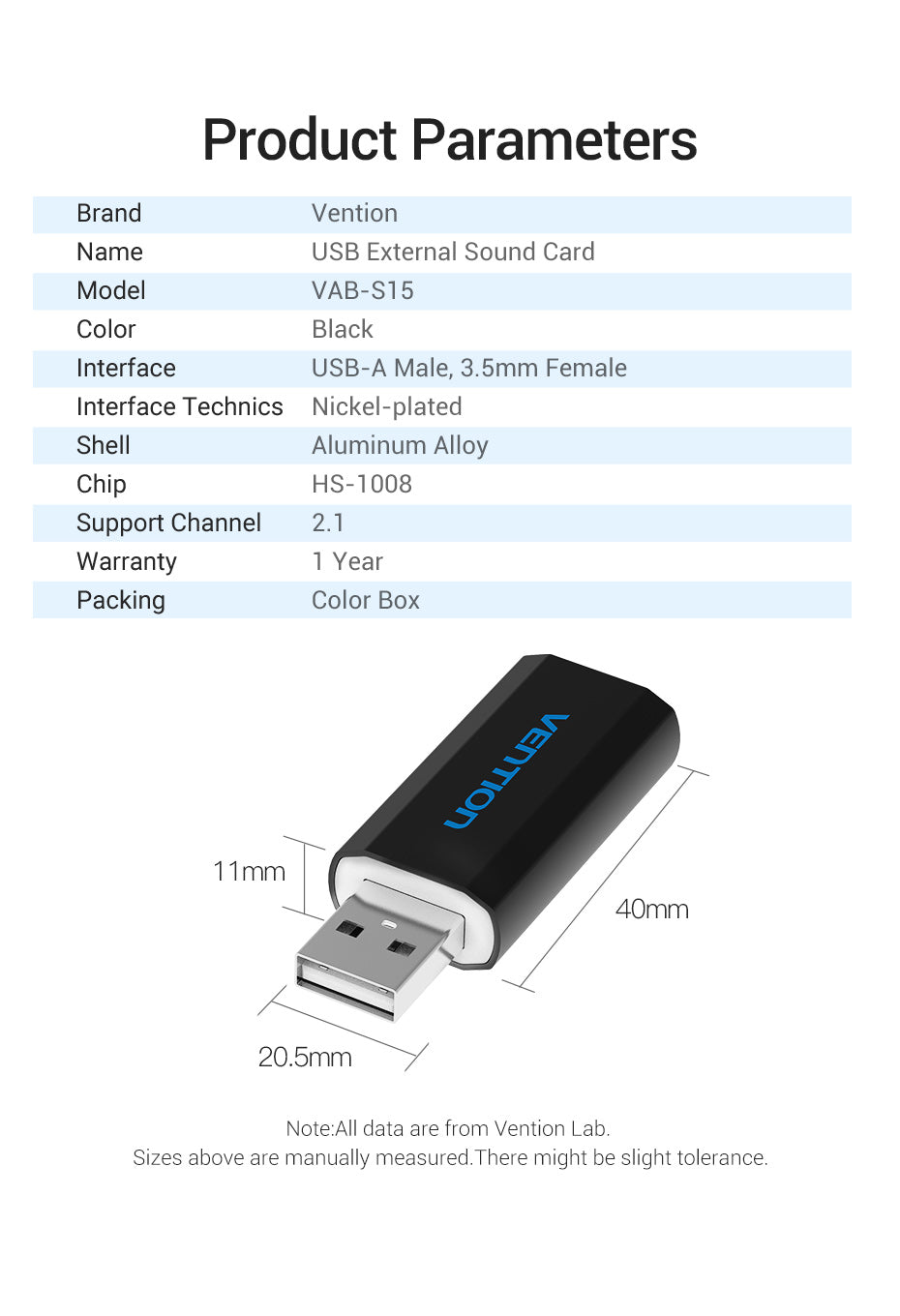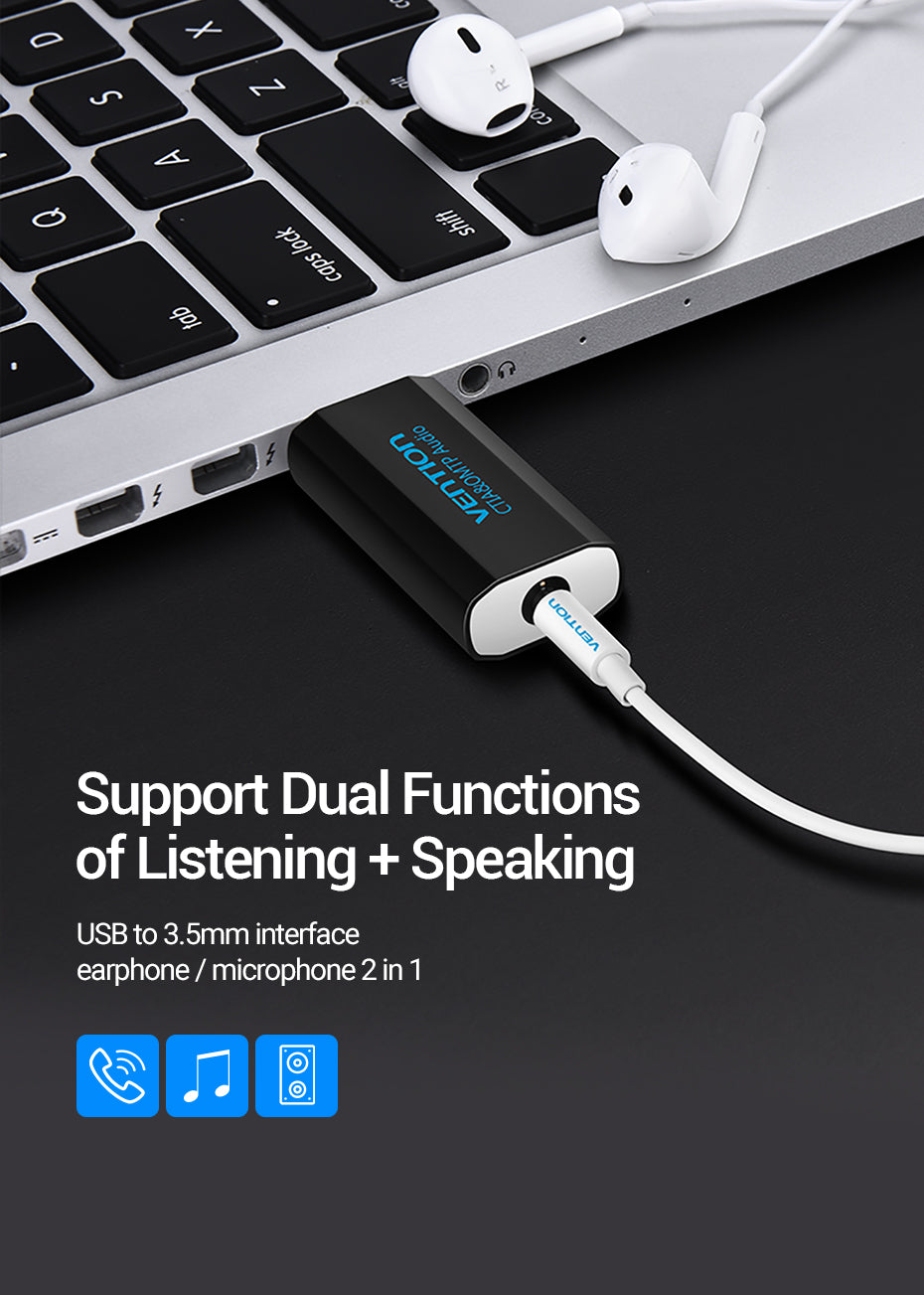 Vention USB External Sound Card Black Metal Type (CTIA)