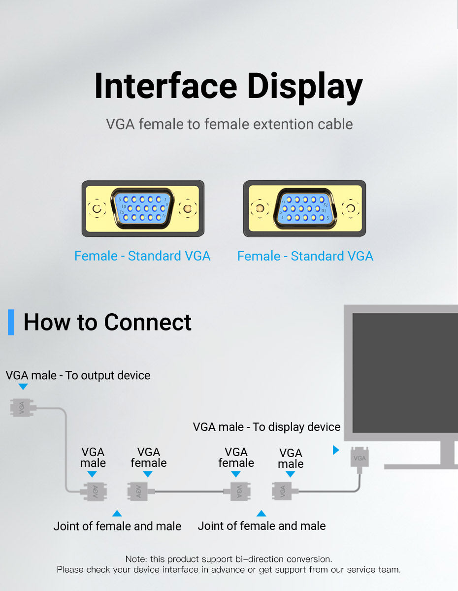 - Use Cases: Ideal for extending the distance between VGA devices, such as connecting a computer to a monitor or projector, or linking multiple VGA cables in educational or office settings